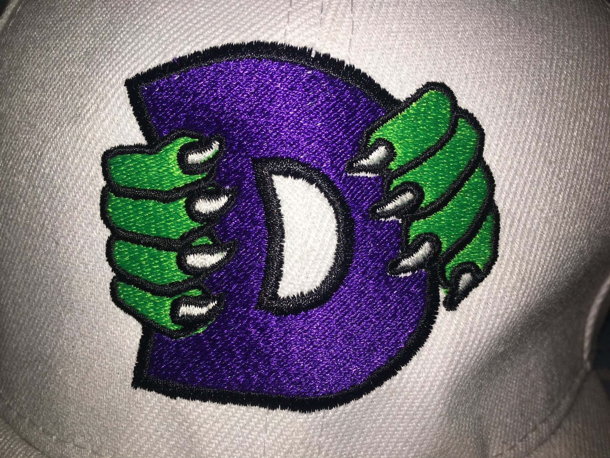 Adult SnapBack hat with Velcro adjustable band with embroidered purple logo.