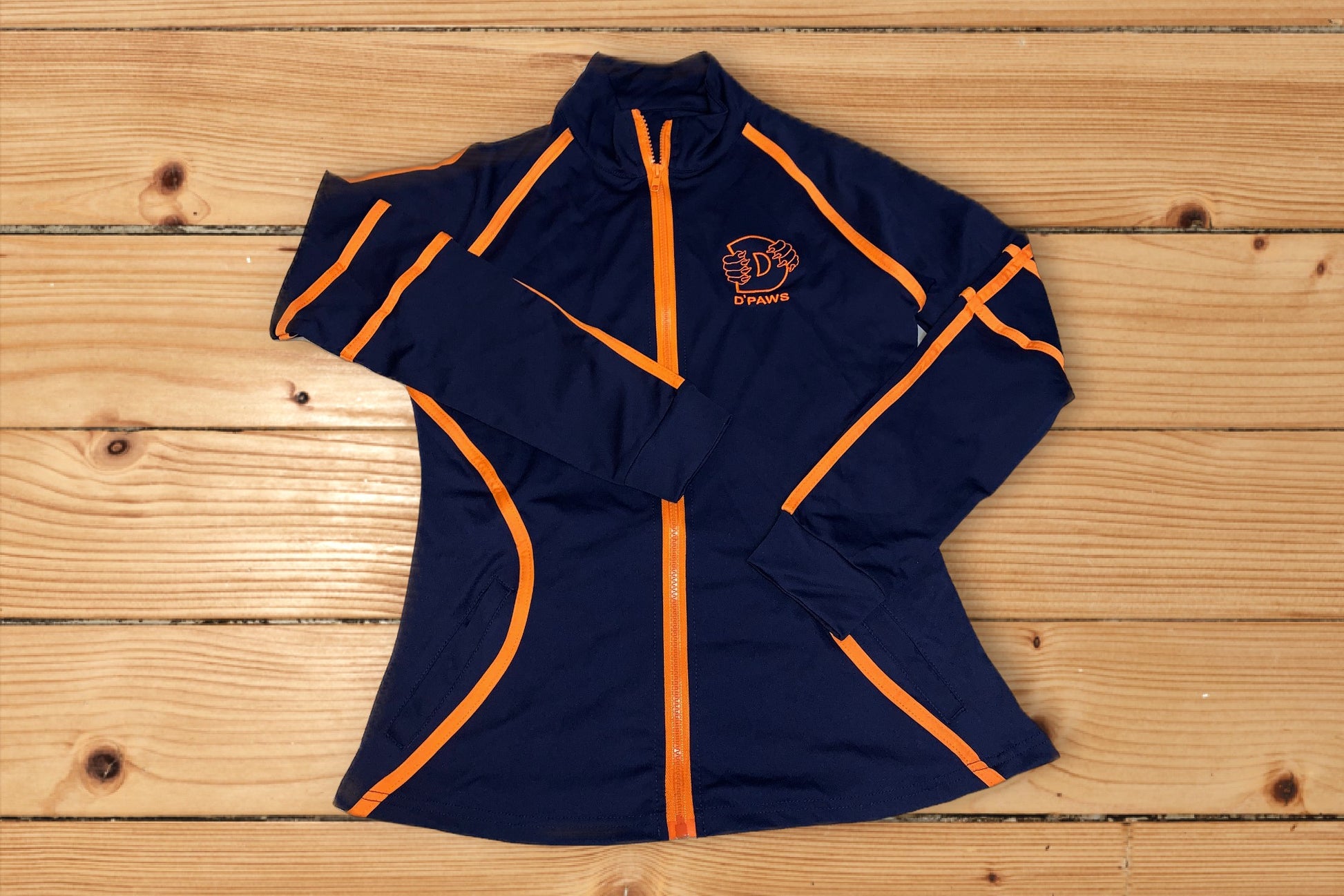 Ladie's Navy Blue Sports Suit with Orange Stripes and Embroidery