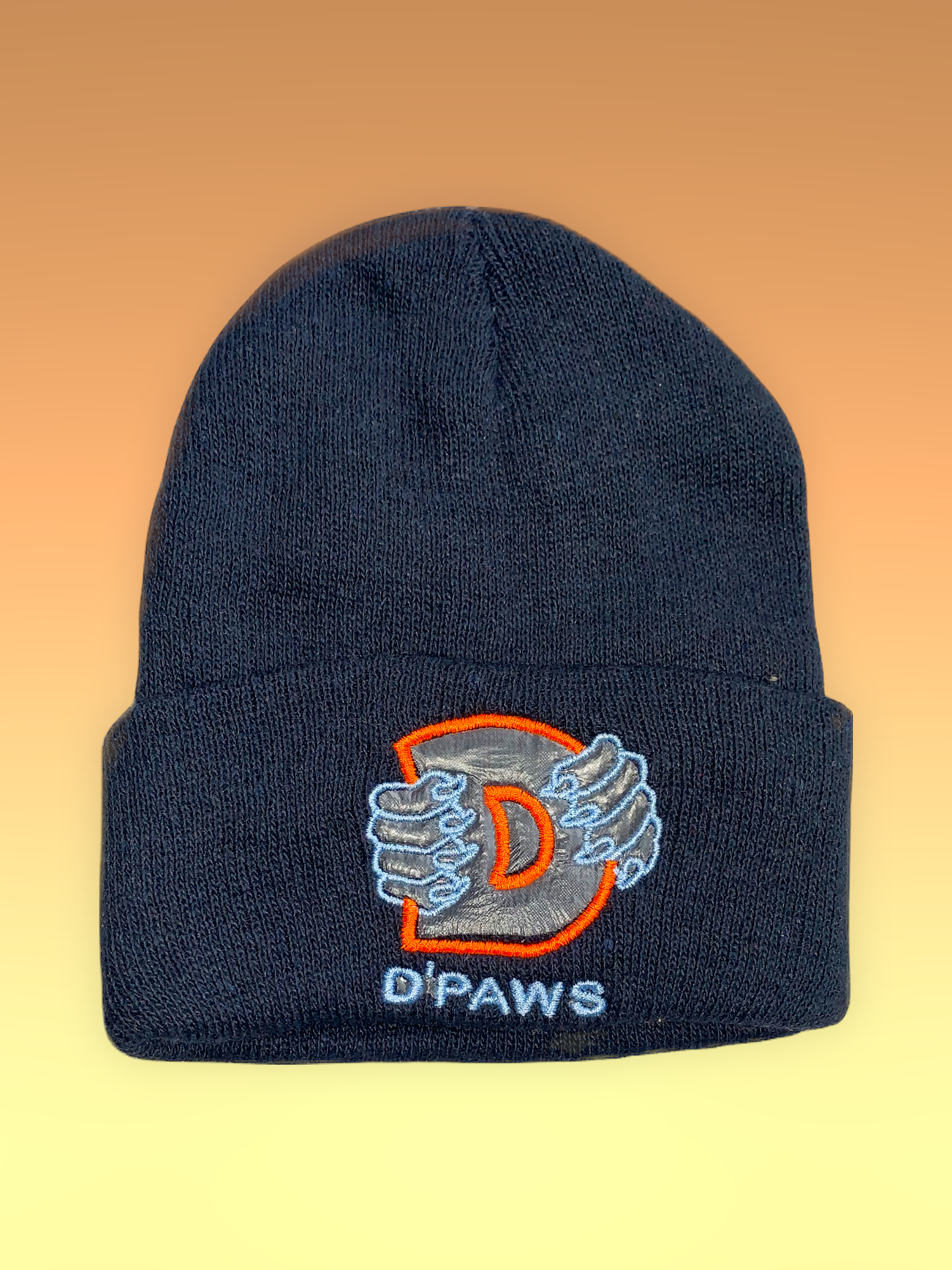 Adult sized, Navy Blue Beanies. All have blue and orange embroidery.